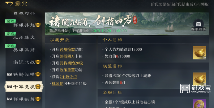 援军召唤(公测新增):召唤一支与主力同级的义军部队,自由操控,增强战场机动性。