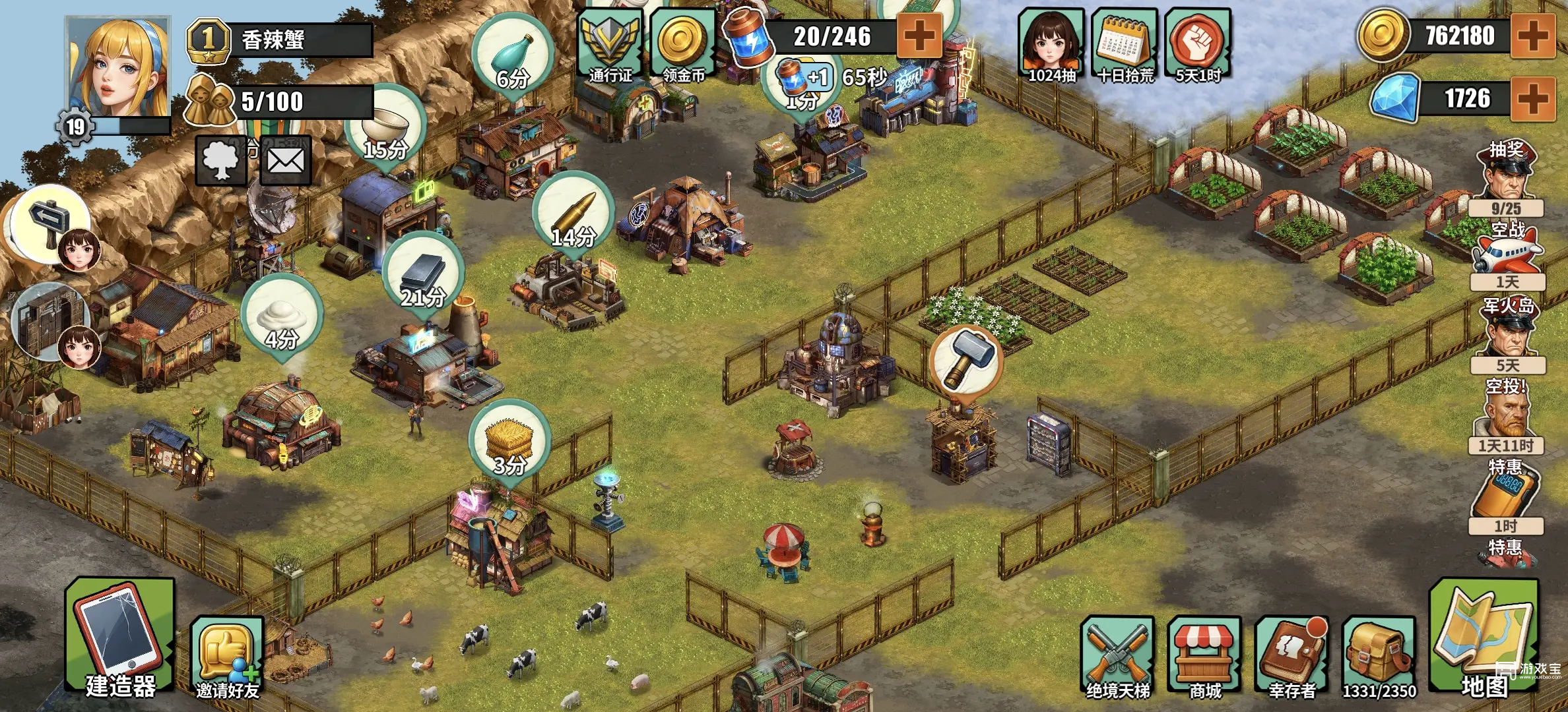 幸存者管理是核心:按特长分工——战斗精英守家探索、种植专家务农、巧手造物、医者护理。注意情绪:提供充足食物、休息和娱乐,避免团队涣散。